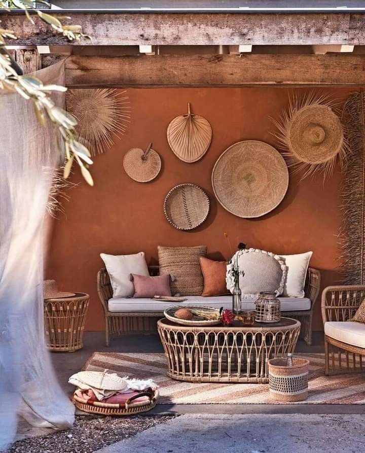 1/ الألوان المغربية 🌈 يعد استخدام الألوان الغنية سمة مميزة للستايل المغربي في التصميم الداخلي. تستوحى الألوان من الطبيعة الخلابة في المغرب، حيث تتراوح من الأحمر النابض بالحياة والبرتقالي إلى الأزرق العميق والأخضر، ويتم استخدام المعدنيات مثل الذهب والفضة في الزخارف الديكورية.