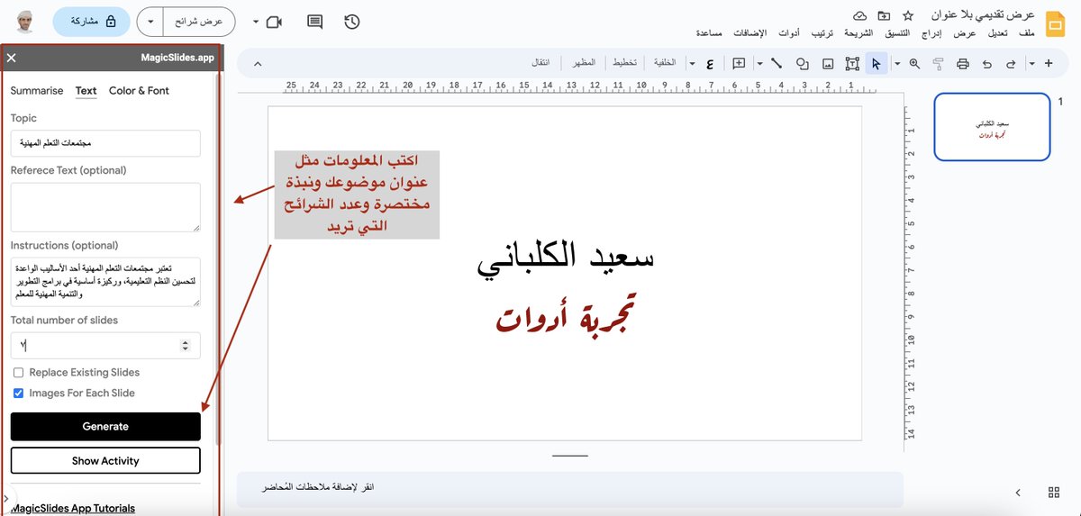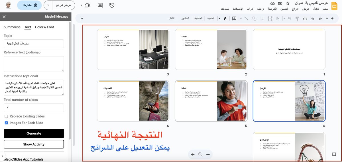 الإضافة تعمل على توليد شرائح عرض جاهزة مع الصور والعدد الذي تريده من الشرائح مع إمكانية التعديل