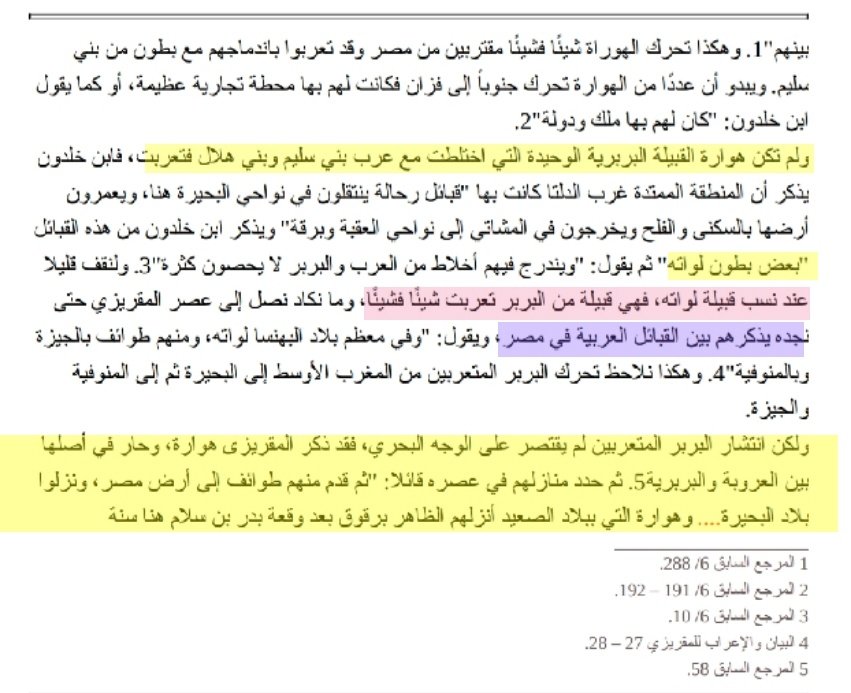 ▪︎و هنا يفضح الدكتور هؤلاء الذين ادعوا انهم من بنو هلال و بنو سليم حيث يقول "" لقد ظهرت في المنطقة تجمعات بشرية جديدة تنسب نفسها جميعا لبنو هلال و بني سليم و #تتوسل_بالعربية و لو سلمنا بانهم جميعا من أحفاد الهلالية و السليمية لتصورنا المنطقة كانت #خالية قبل التغريبة "" !