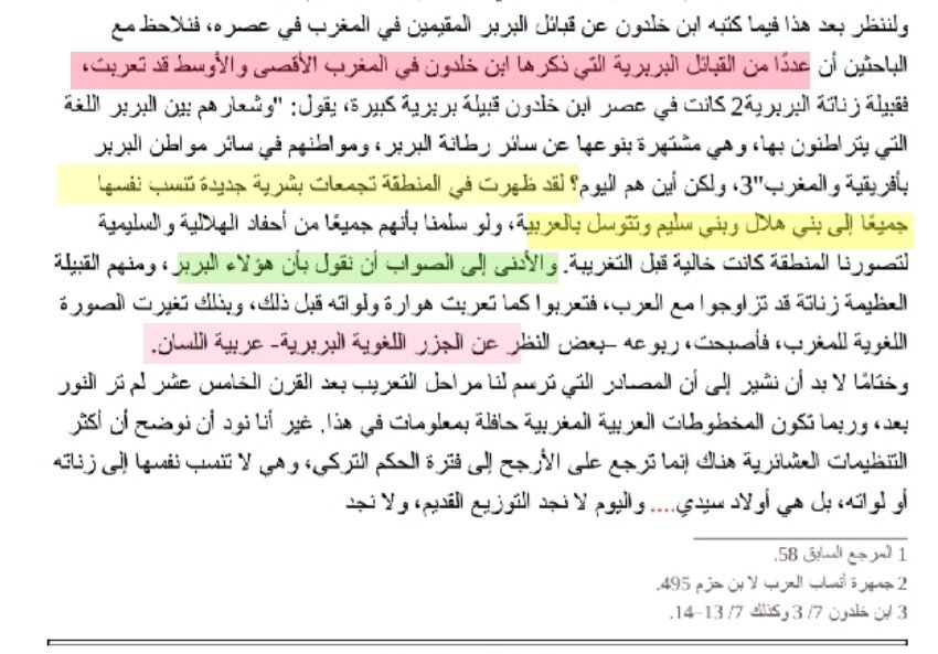 ▪︎إذا نفهم من كلامه ان هؤلاء المدعين للإستعراب سواء في مصر أو شمال افريقيا ليسوا إلا أمازيغ تعربوا (بعيدا عن السبب الذي سرده و لا اتفق معه لانه سبب أخر ساذج بل استغلت هوارة و لواتة و بعض زناتة هذا النسب لان بنو هلال و سليم كانوا يدعون انهم من آل البيت ) و في هذا كلام كثير.