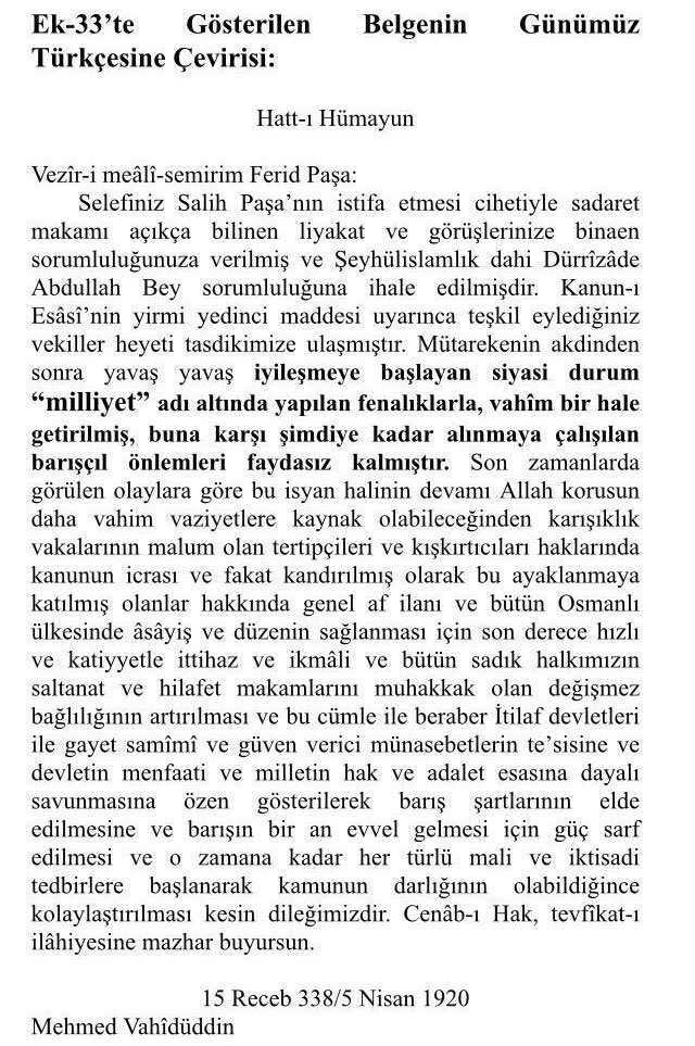 6⃣- Millî teşkilat denilen isyan hareketinin Anadolu’yu korkunç bir istilaya sokmaya ve devletin başını gövdesinden ayırmaya çalıştığı belirtilerek, yalancı milliyet davası güdenlerin devletin en büyük düşmanları olduğu ilan ediliyordu.