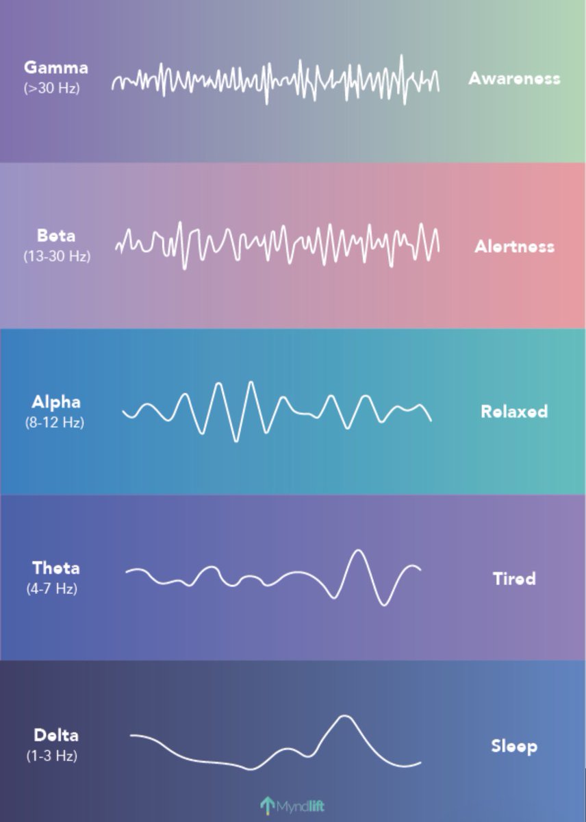 وبما أن جزء من بحثي في الدكتوراة يقيس الموجات الكهربائية للدماغ.. سأحاول شرح موجات الدماغ بشكل بسيط جدًا 🧠🤓🧵