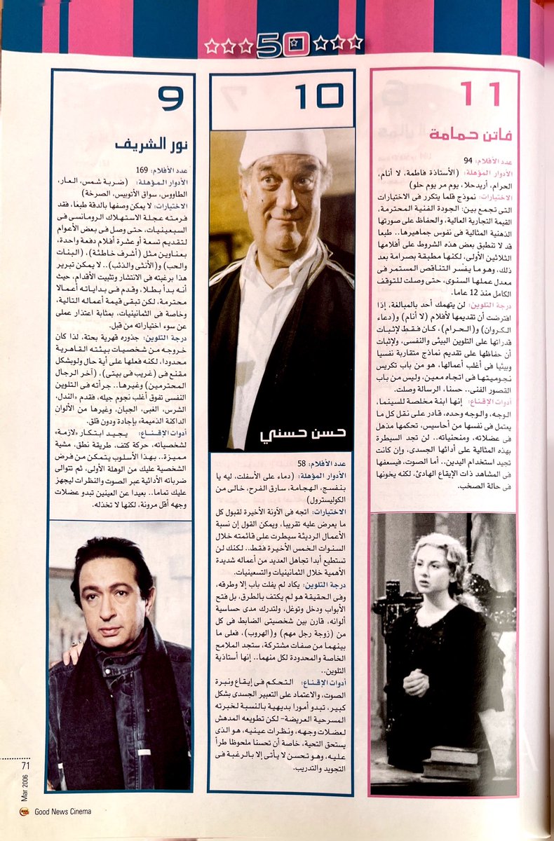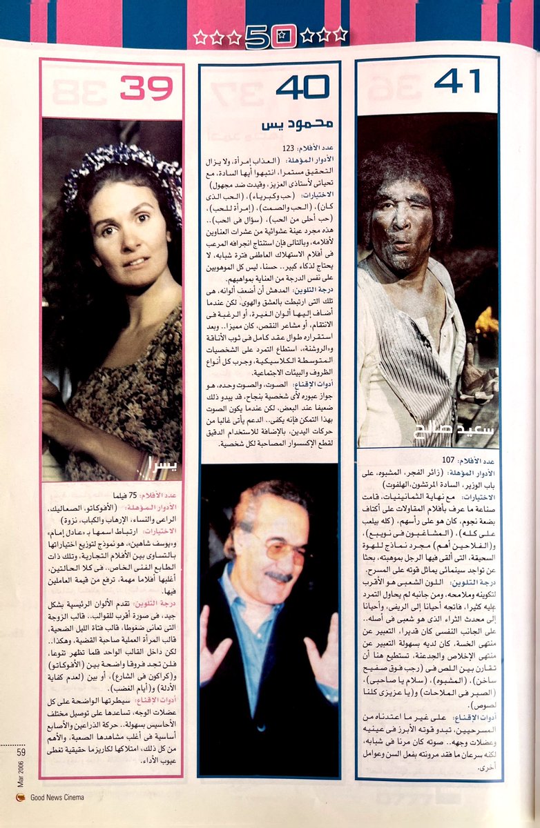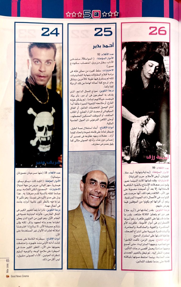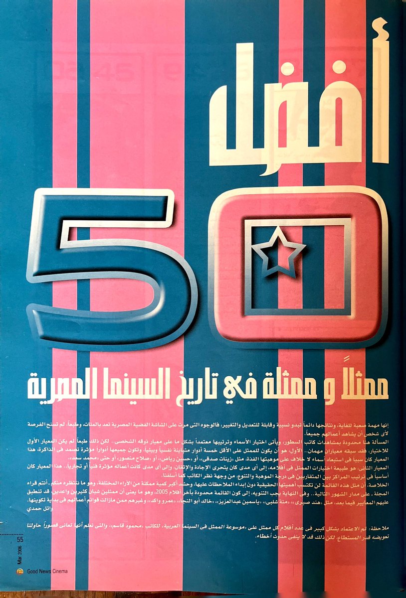 اتكلمت من كام يوم عن ملف "افضل ٥٠ ممثل وممثلة ف تاريخ السينما المصرية" اللي كتبته ف مجلة (سينما جودنيوز) زمان، وقلت ان منى زكي كانت الوحيدة من جيلها وجت ف المركز ٤٩.. ردود الفعل والاسئلة حول باقي القائمة حمستني اروح بيتي القديم واجيب نسخة العدد اللي نزل فيه الملف.. كان عدد مارس…