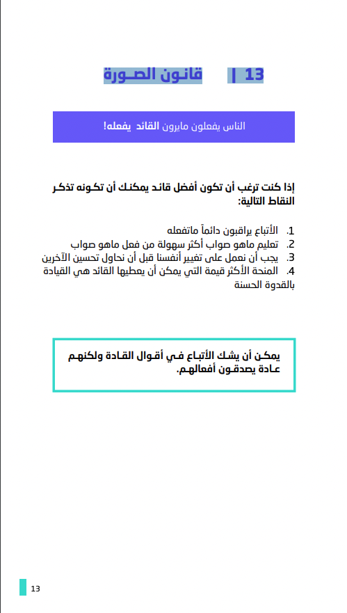 استنبط ماكسويل من خبرته 21 قانون في القيادة وهي كما يلي :