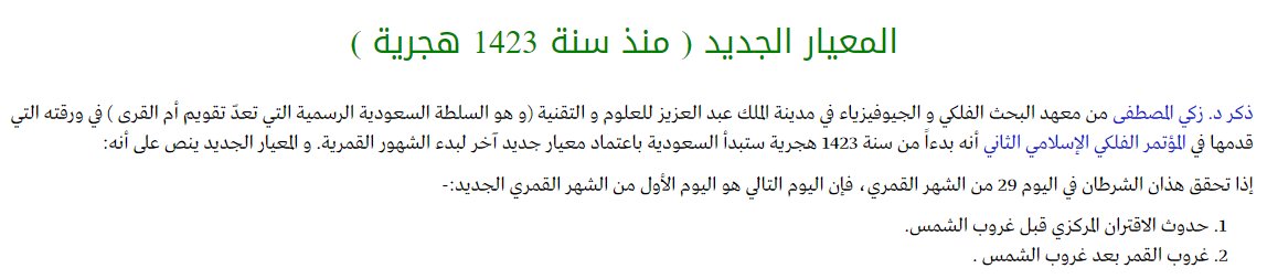 وحتى لو تغيرت طريقة حساب تقويم أم القرى فهو معيار لتحديد بداية الشهر رسميا ولن يُسقط شرط الرؤية بالعين المجردة!