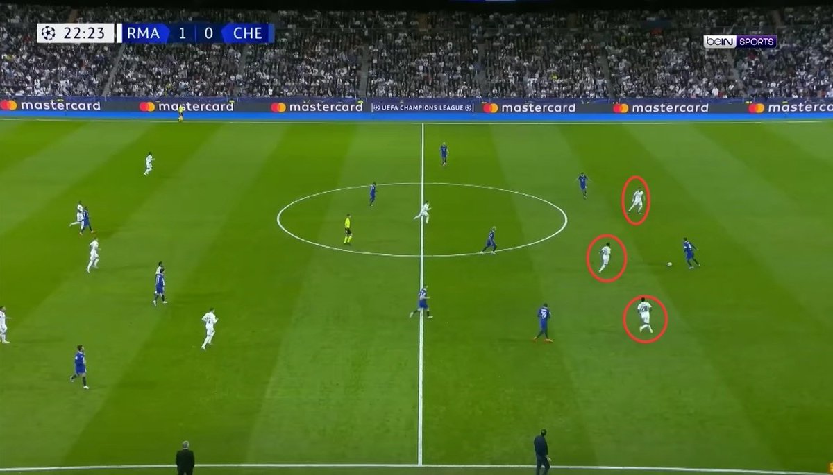 لذلك غيّر انشلوتي عقلية الفريق و نظام لعبه ليعتمد اعتماد كبير على اسلوب الضغط العالي و العكسي من الأمام بحدة و شراسة عالية لتزداد نسبة افتكاك الكرة في الثلث الأخير وبموجبه اصبح ريال مدريد يمتلك الكرة بشكل أكبر ويصبح فريق صاحب فعل ومبادرات هجومية صريحة