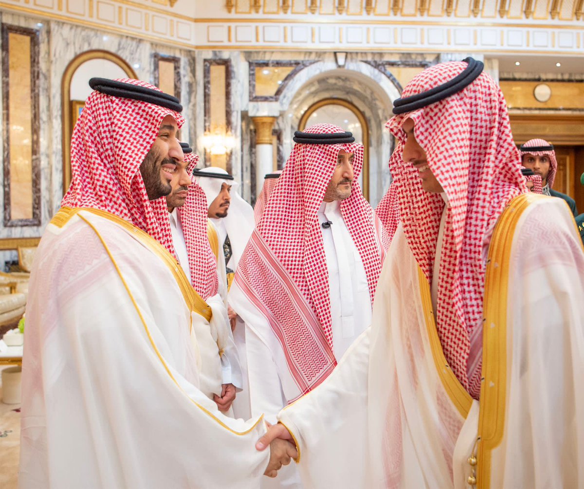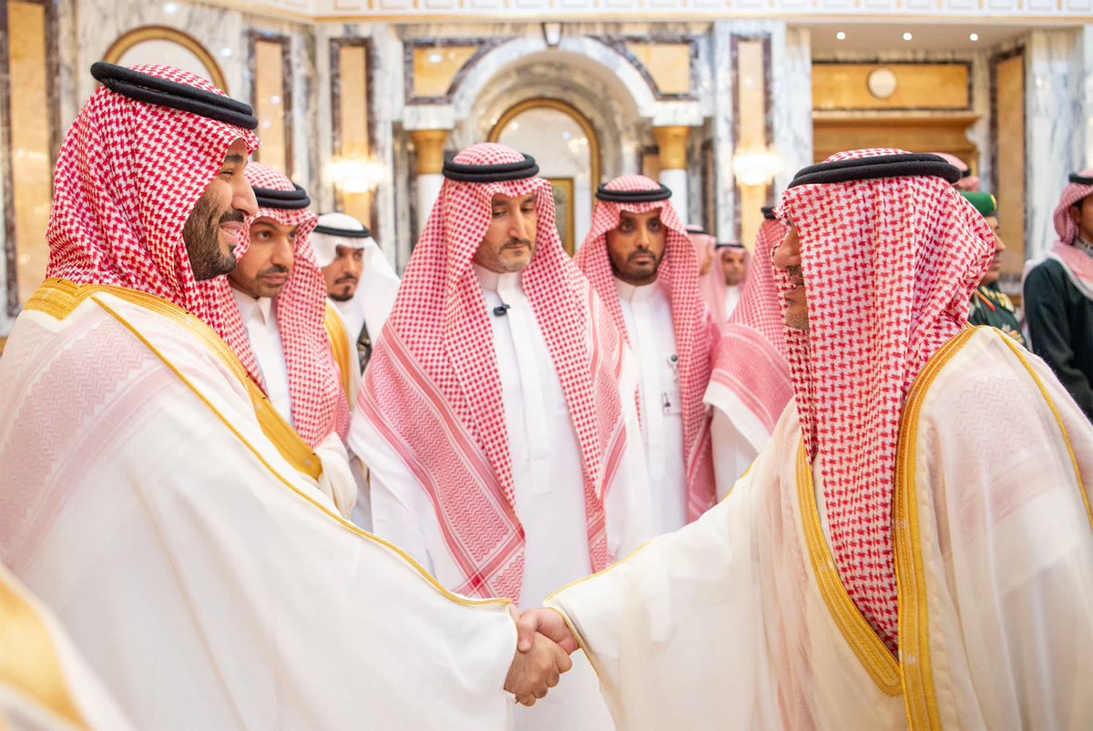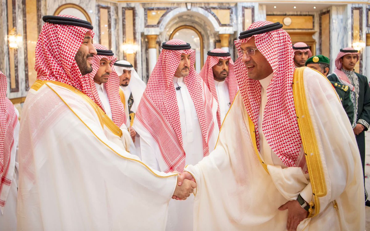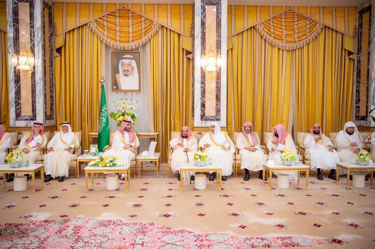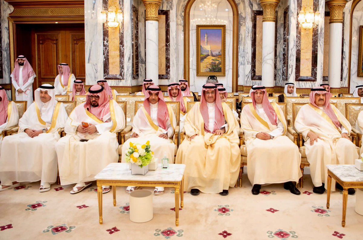 سمو #ولي_العهد يستقبل أصحاب السمو الأمراء وأصحاب الفضيلة العلماء والمشايخ والمعالي، وكبار المسؤولين من مدنيين وعسكريين، الذين قدّموا التهنئة لسموه بعيد الفطر السعيد.