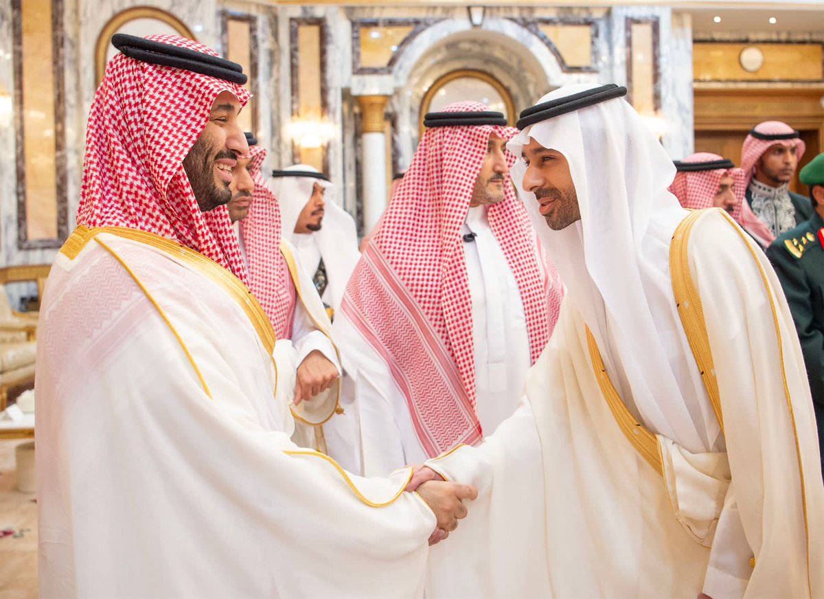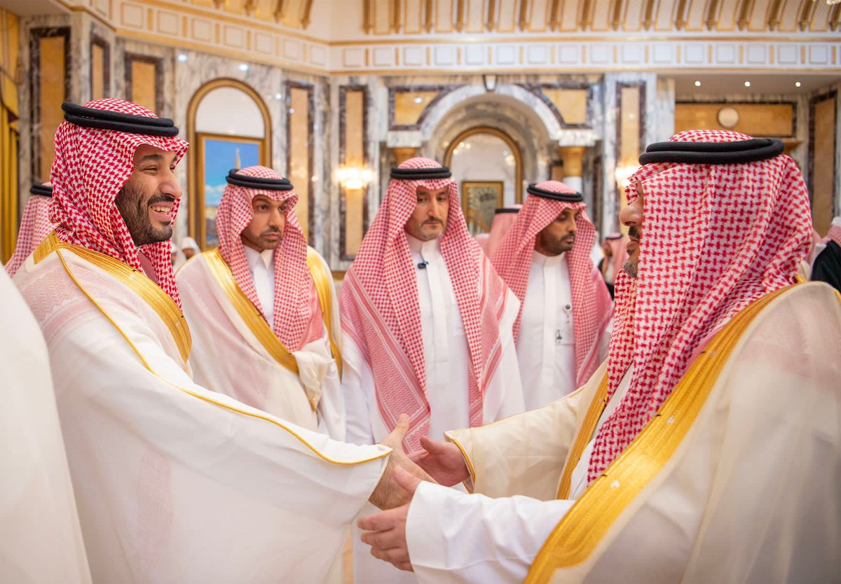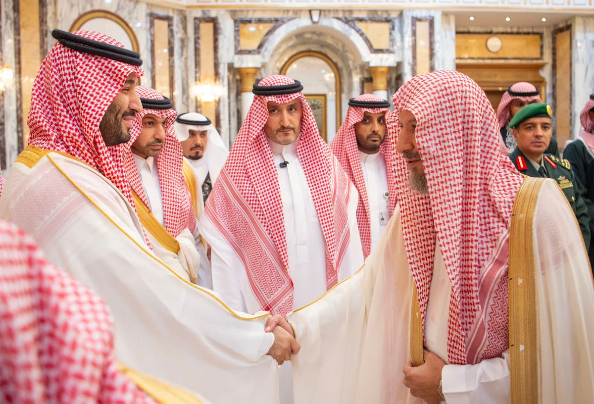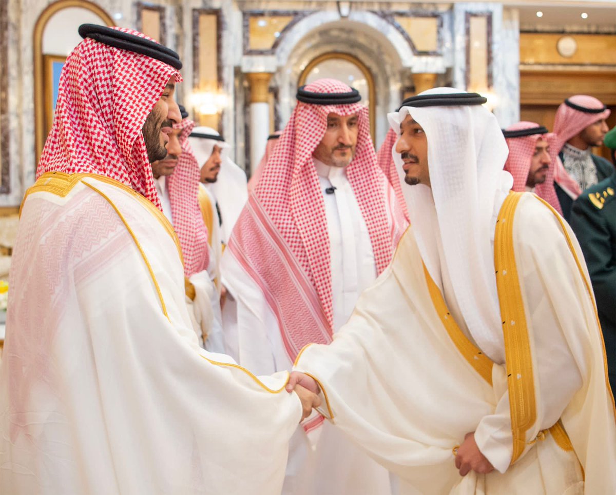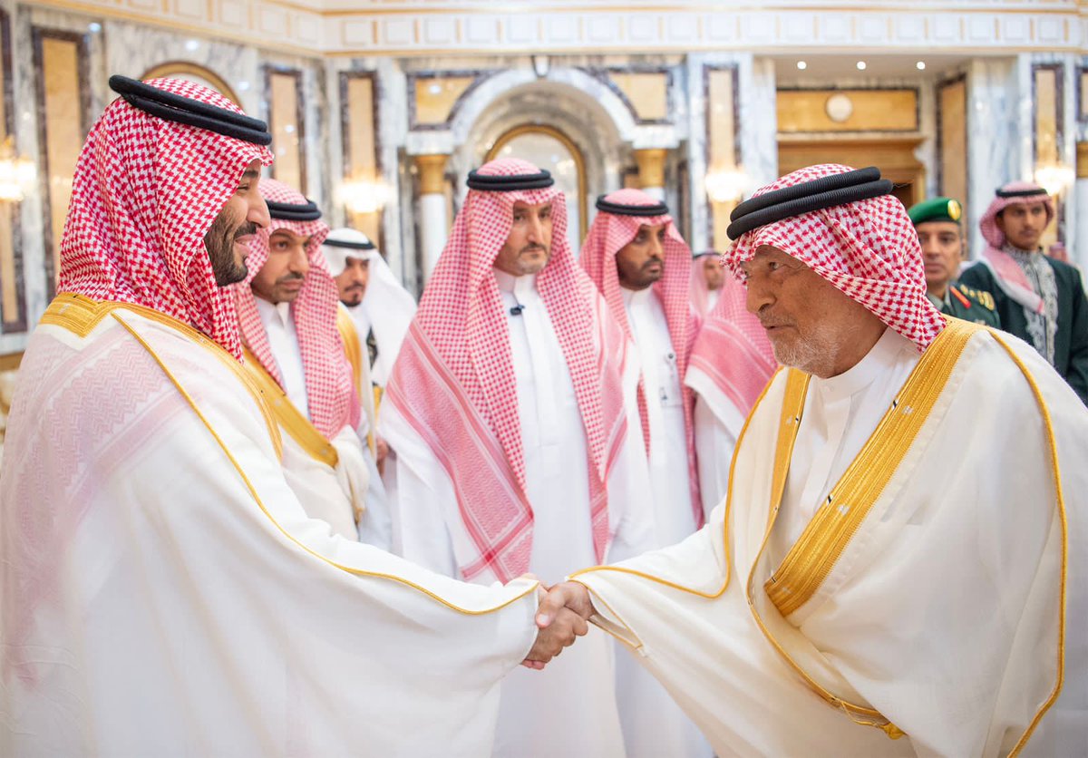 سمو #ولي_العهد يستقبل أصحاب السمو الأمراء وأصحاب الفضيلة العلماء والمشايخ والمعالي، وكبار المسؤولين من مدنيين وعسكريين، الذين قدّموا التهنئة لسموه بعيد الفطر السعيد.