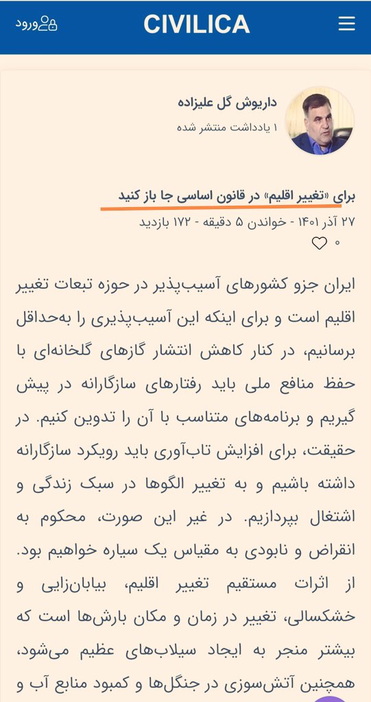 در اینجا هم برایتان لینک توییت هایی که قبلا درمورد تغییرات اقلیمی یا همون تغییرات آب و هایی زدم میگذارم حتما مطالعه کنید لطفاً 🙏