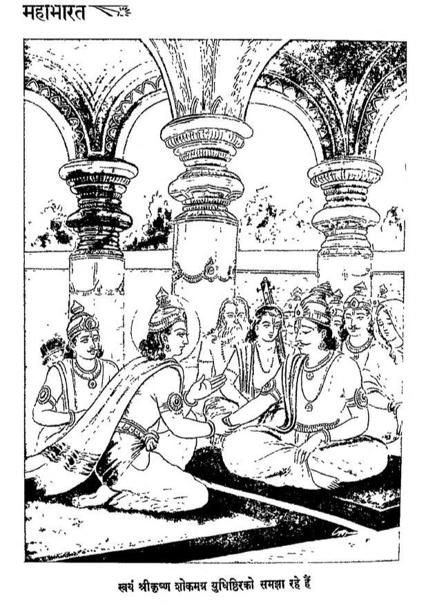 व्यास उन्हे कई कहानियां सुनाते है उनका ढांढस बांधने के लिए, इनमें से एक कहानी है की कैसे राजा सृंजय को नारद ने सोलह राजाओं की कहानी सुनाई थी, सृंजय के पुत्र की मृत्यु पर। और उन्हें बताया कि कैसे इतने महान राजाओं को भी एक न एक दिन मृत्यु से हार मारनी पड़ी तो आपके पुत्र क्या है।