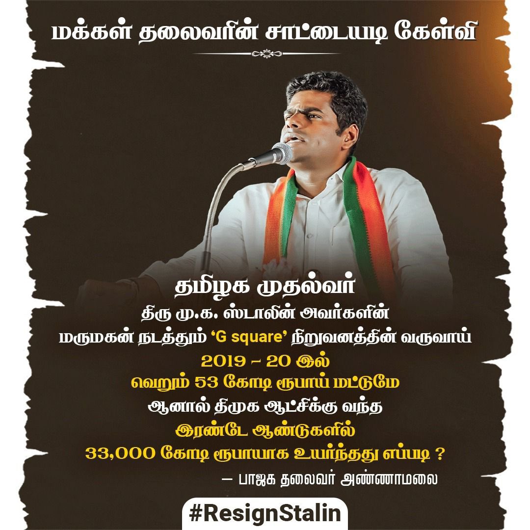 @GSquareHousing என்ற நிறுவனத்தின் வருவாய் 33 ஆயிரம் கோடியாக உயர்ந்துள்ளதென @annamalai_k நெஞ்சு வெடிக்க பேசுகிறார்.