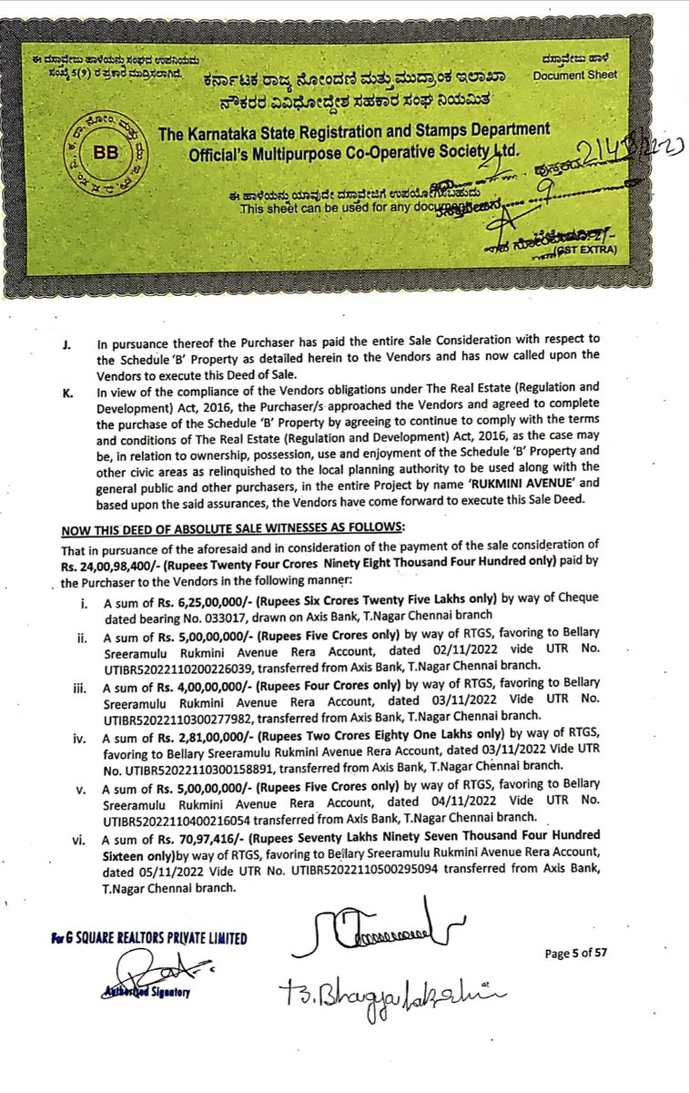 அதாவது ரூ.24 கோடிக்கு கர்நாடகாவின் பிஜேபி அமைச்சர் விற்பனை செய்த ஒரு சொத்தின் மதிப்பை @BJP4TamilNadu தலைவர்