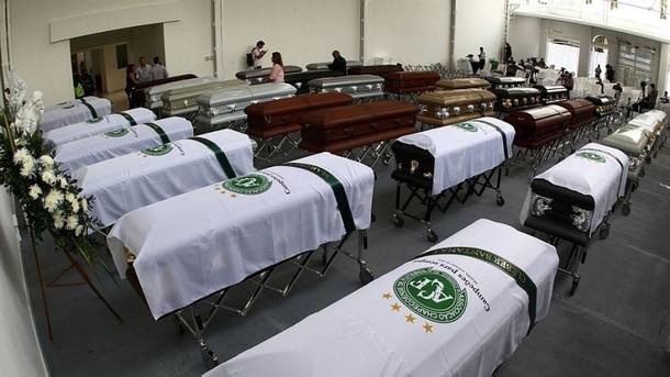 تم الوداع و إلقاء نظرة أخيرة على ضحايا هذه الحادثة في ملعب فريق شابيكوينسي البرازيلي حينها حضر 19 ألف متفرج وسط الأمطار الغزيرة.💔