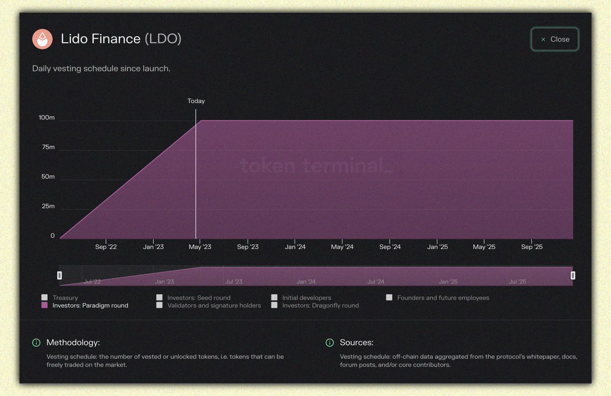 هي أكبر حامل لـعملة LDO (٧٠ مليون في محفظتها). حسب @tokenterminal سينهون قريبًا جولة تمويل لـ 100 مليون LDO. مما يعني أنهم سيملكون أكثر من 10 ٪ من العرض المتداول.