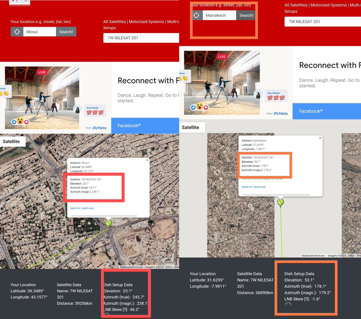 لكن مثلا دول المغرب العربي تكون صحون الاستقبال بأتجاه الجنوب تماما