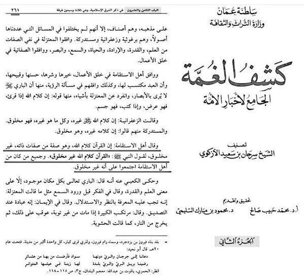 كل إباضي ملزم بما في كتب أئمته ما إن لم يتبرأ مما فيها ومن مؤلفيها