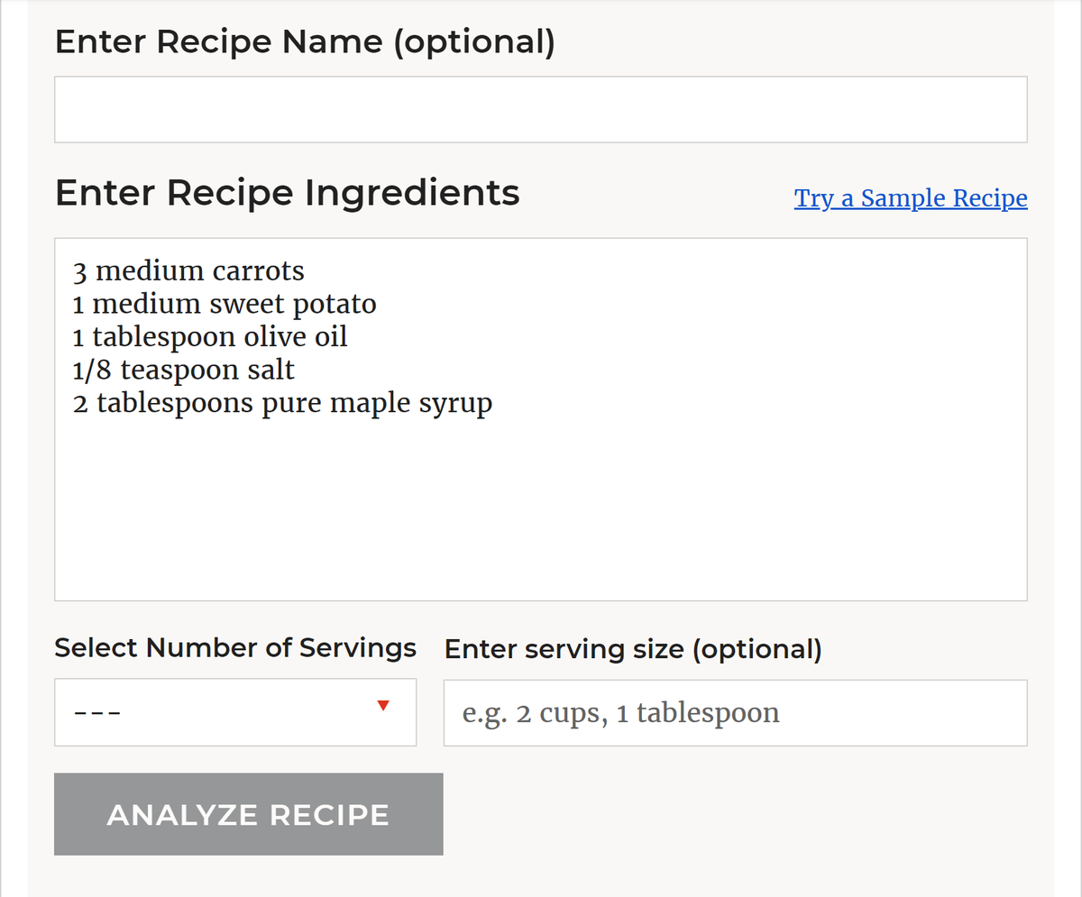 هذه الحاسبة تعطينا "رؤية كاملة"عن بيانات الغذائية للطبخة على شكل جدول، ويمكن من خلالها مساعدتنا في اضافة التعديلات على الطبخة لتحسين قيمتها وسعراتها الحرارية