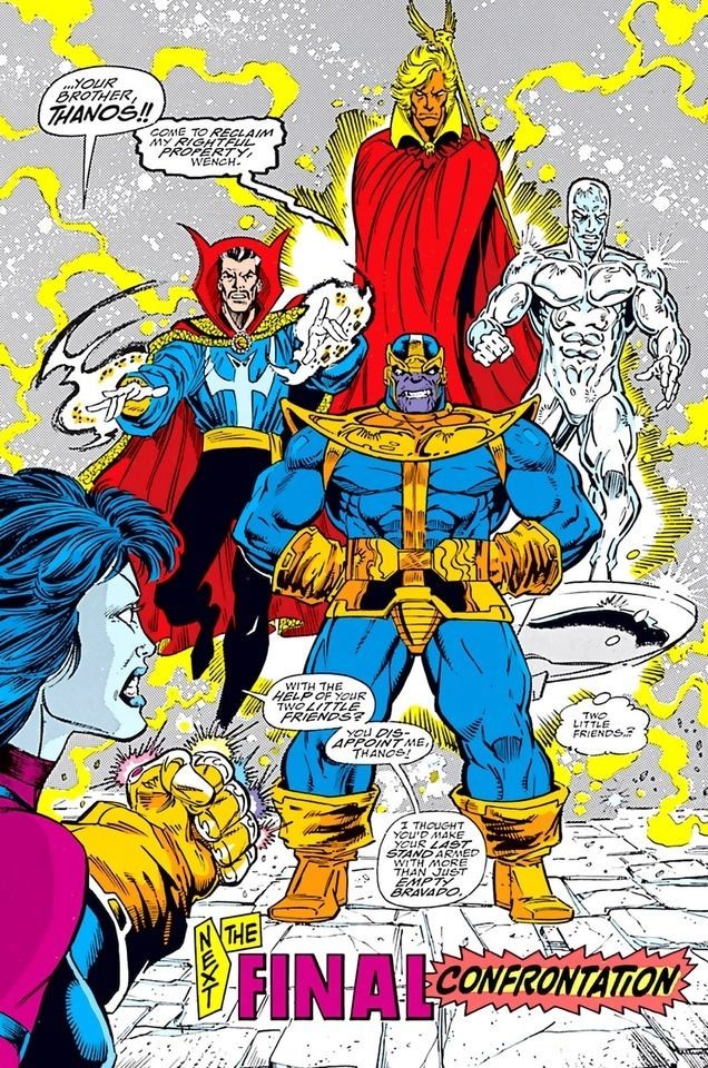 هذا الكومكس كان يتكلم عن حصول ثانوس للانفنتي جوثلنت مع القوة التي جعلته مسواي لاقوى الكيانات فهذا القصة هية من بدأت فكرة في جعل ثانوس مهووس للقوة و ان يحصل على حب ديث القصة مميزة بظهور الكثير من الشخصيات فهي من اجمل القصص لمرافل