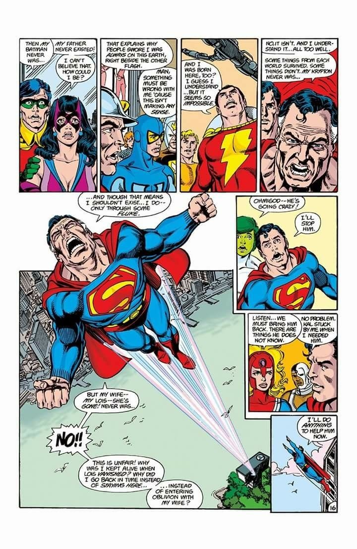 من اوائل الكومكس في دي سي الذي يعطي مفهوم الاكوان المتعددة و من بعدها قدم الكثير من القصص بهذا المفهوم القصة جداً رائعة تحالف فيها الابطال و الاشرار لمواجهة شخص واحد يهدد الاكوان كلها فسوف نشهد على موت شخصيات و الكثير من الحماس