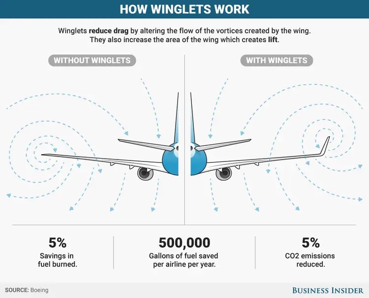 🧳 ربما قد لاحظ البعض منكم خلال سفره بالطائرة وجود جنيحات صغيرة في اطراف جناحي الطائرة والتي تسمى Winglets