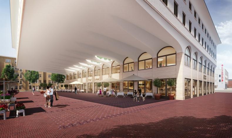 Het project bestaat uit een ondergrondse parkeergarage, een culinair centrum en een hotel. In het mu...