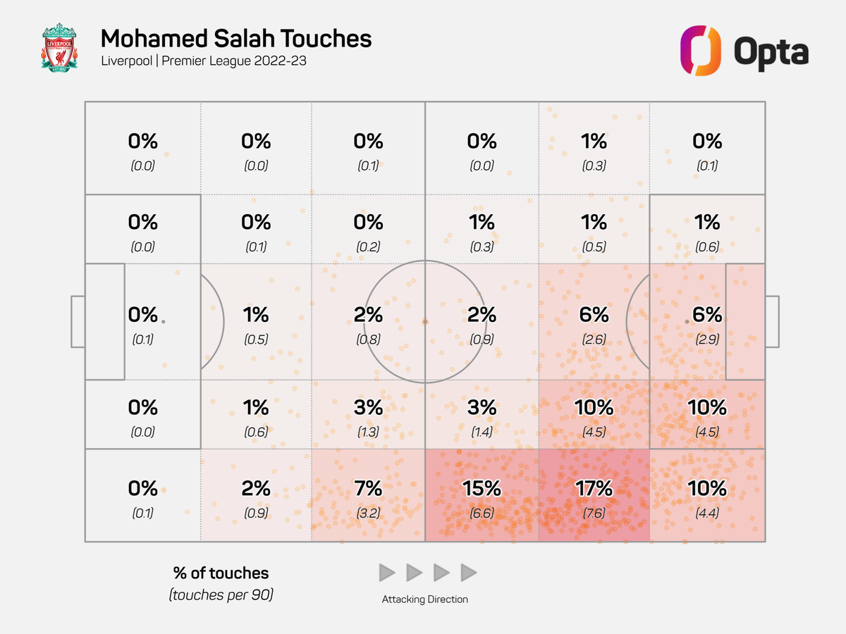 فسابقاً مع وجود فيرمينو؛ كان محمد صلاح يتمتّع بقدرةٍ أكبر على إيجاد مساحةٍ مناسبةٍ للدخول لمنطقة الجزاء مع نزول فيرمينو بين الخطوط لسحب أحد المدافعين