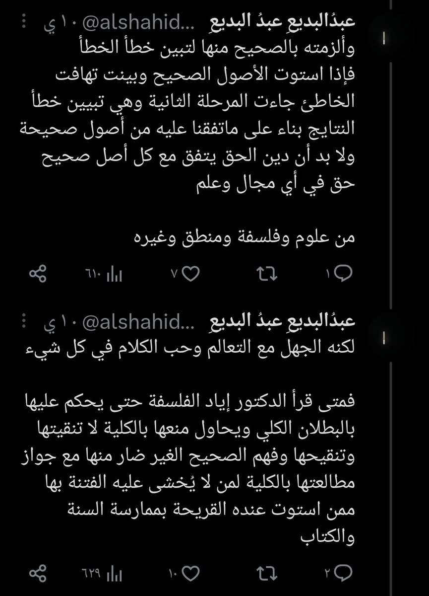 يستشهد هذا الجهمي بالغزالي على بيان فضل الفلسفة والغزالي ليس من أهل الفضيلة بل ليس من أهل الإسلام.. وهو الخصم الحكم فكيف يُستدل به على إثبات فضل الكلام وهو من أهله بل من كبارهم