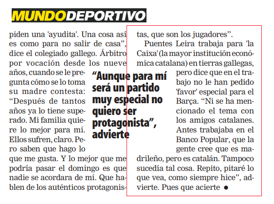 كمعين للحكام في لجنة التحكيم ، بينما كان (هو) موظفًا في بنك (La Caixa) شريكبرشلونة.