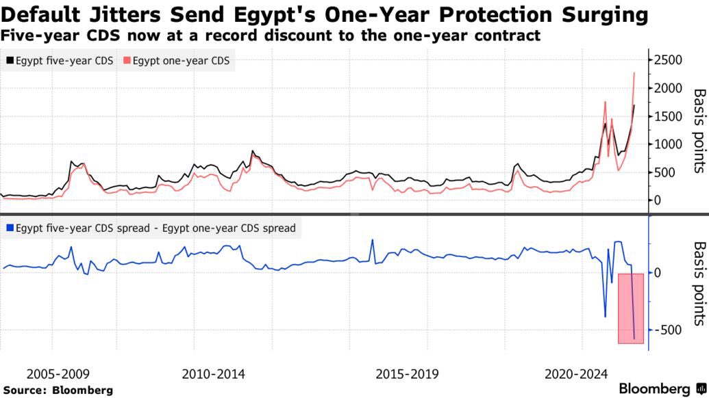 ارتفاع الهامش بين السندات المصرية وسندات الخزانة الأمريكية فوق 1000 نقطة أساس حدث من قبل في أغسطس من العام الماضي حيث ارتفع حينها فوق 1200 نقطة و تكلفة التأمين ضد تخلف مصر عن السداد بلغت نفس المستويات الحالية في شهر يونيو الماضي عند 1500 نقطة أساس