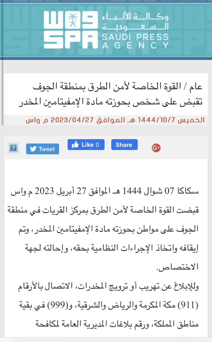 🚨🚨قبضت القوة الخاصة لأمن الطرق بمركز القريات في منطقة الجوف على مواطن بحوزته مادة الإمفيتامين المخدر، وتم إيقافه واتخاذ الإجراءات النظامية بحقه، وإحالته لجهة الاختصاص.