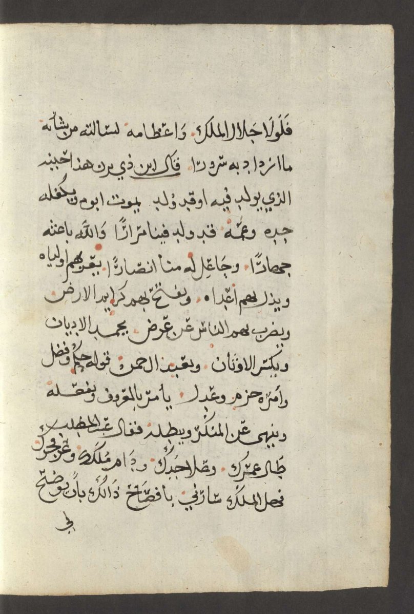 بأن يوضح فيه بعض الإيضاح فقال ابن ذي يزن والبيت ذي الطنب والعلامات والنصبإنك يا عبد المطلب لجده من غير كذب فخر عبد المطلب ساجدا قال ابن ذي يزن ارفع رأسك ثلج صدرك وعلا أمرك فهل أحسست شيئا مما ذكرت لك قال عبد المطلب أيها الملك كان لي ابن كنت له محبا وعليه حدبا مشفقا فزوجته كريمة