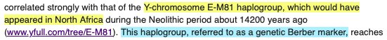 و مجددا نذكر أن التحور E-M81 تحور أصله الشمال الإفريقي و يوصف بصراحة في الدراسات العلمية بالتحور الأمازيغي.