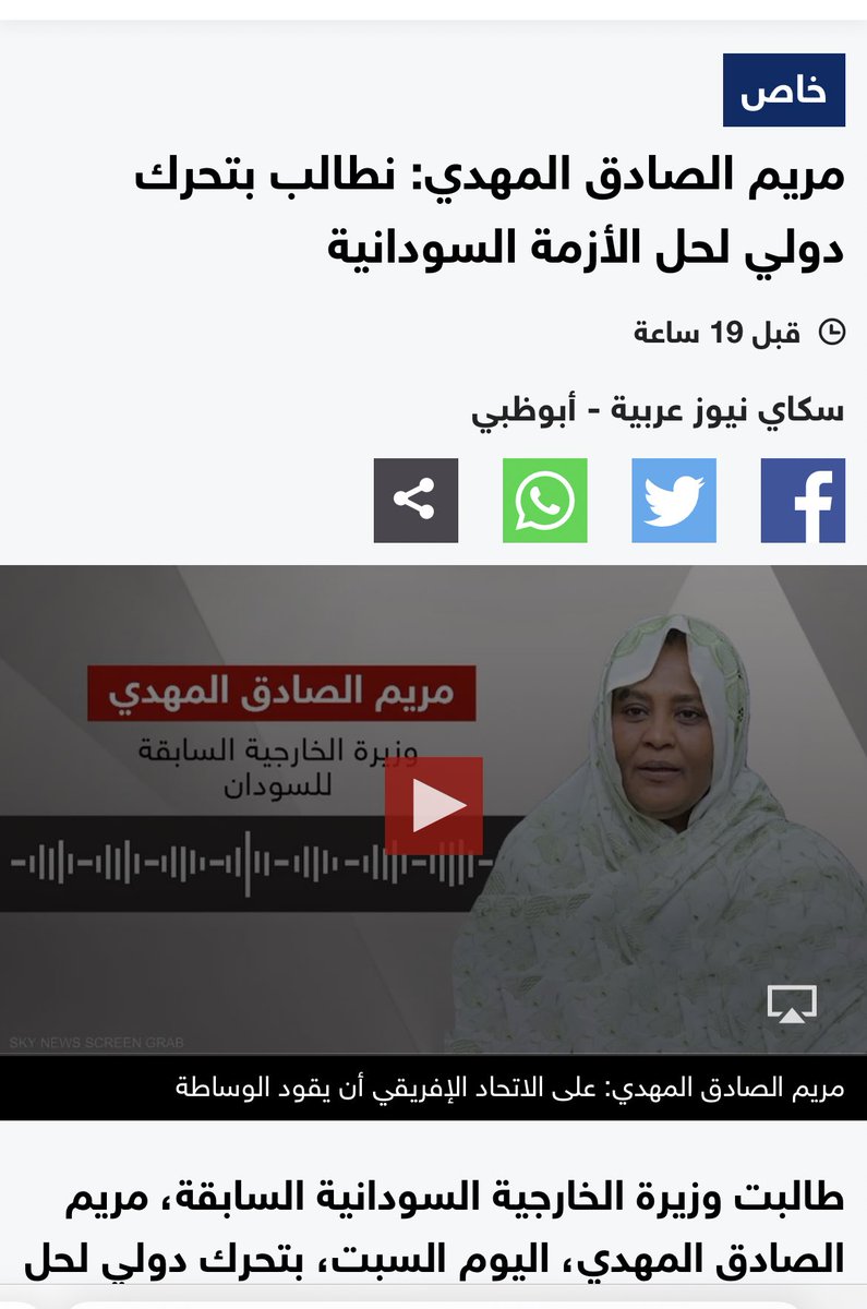 "أكبر ضرر يمكن أن يلحق بالشعب السوداني، وسلامته كدولة ذات سيادة، وأمن جيران السودان، والسلم والأمن الدوليين، هو السماح بحل وسط بين المتحاربين معتمد دوليًا، يقوم على تقاسم السلطة.
