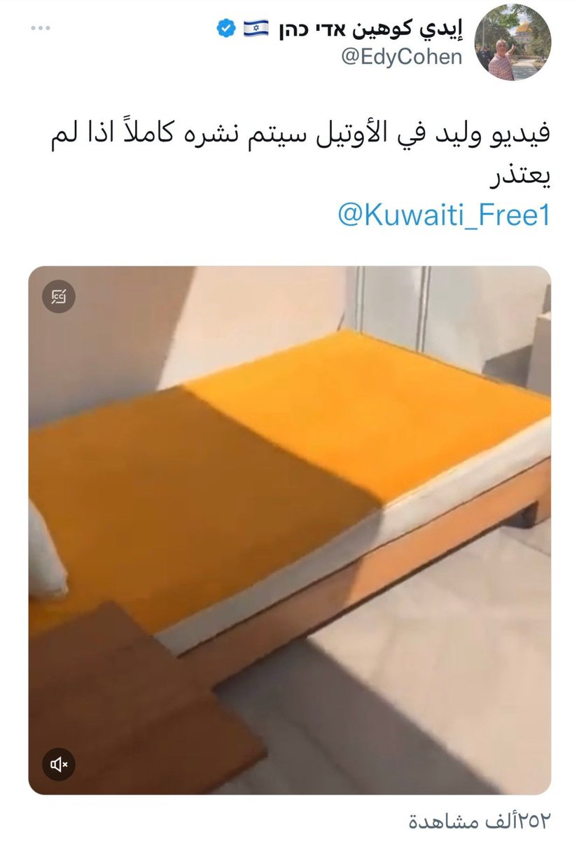 وكرد فعل انتقامي سرب صحفي اسرائيلي يدعى إيدي كوهين مقطع مصور للمواطن الكويتي في غرفته داخل أحد فنادق دبي وهدد بكشف المقطع كاملا إن لم يعتذر ...