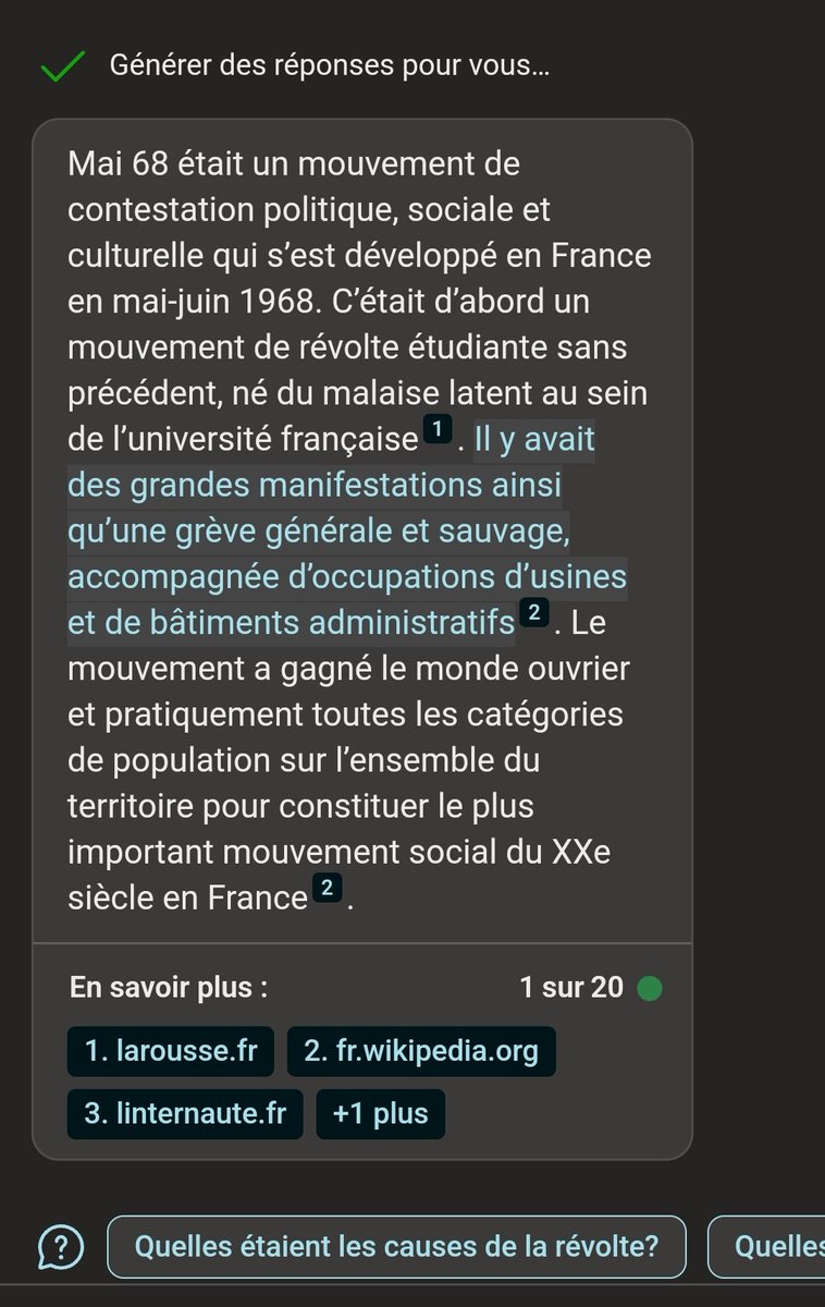 Il propose souvent des réponses courtes mais fournit toujours les sources