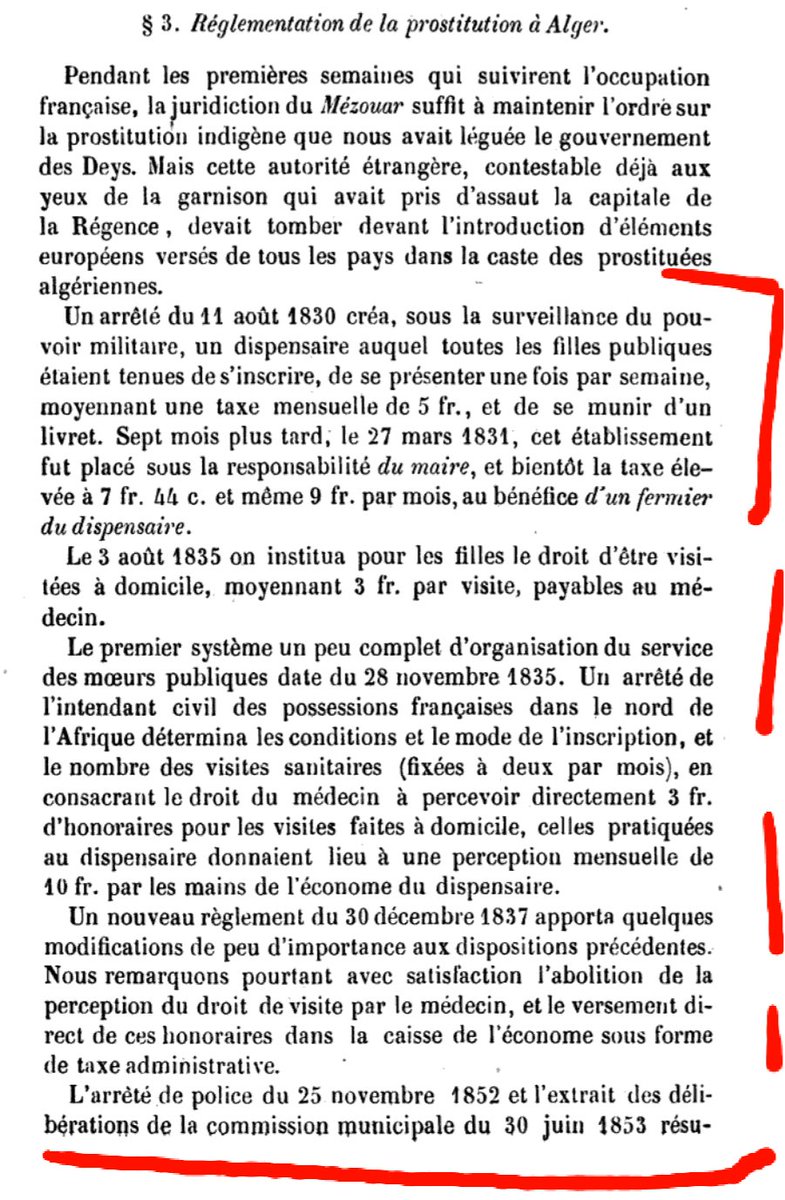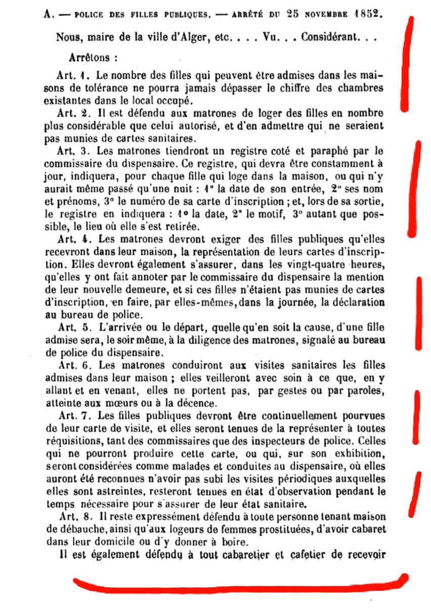أيام كان #المغرب امبراطورية يقام لها ويقعد وكانت الدول تصدر قوانين مالية وتجارية وقوانين جنائية.. كانت فرنسا تصدر قوانين لتنظيم دعارة #الجزائر بلد الشهيدات المشقوقات حماية لجنودها من الفوضى والأمراض التناسلية.. لو كان يومها عازل طبي لما كان هناك بوصبع أصلا