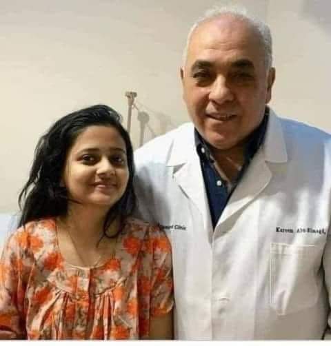 بأميركا ومعروف باسم "الساحر المصري".. الدكتور كريم أبو المجد ... لما شاف الأشعات والتقارير .. قالها انها محتاجة عملية جراحة نادرة لإعادة ترتيب الأمعاء الدقيقة لها .. ولن يتقاضى منها فلوس ولكن