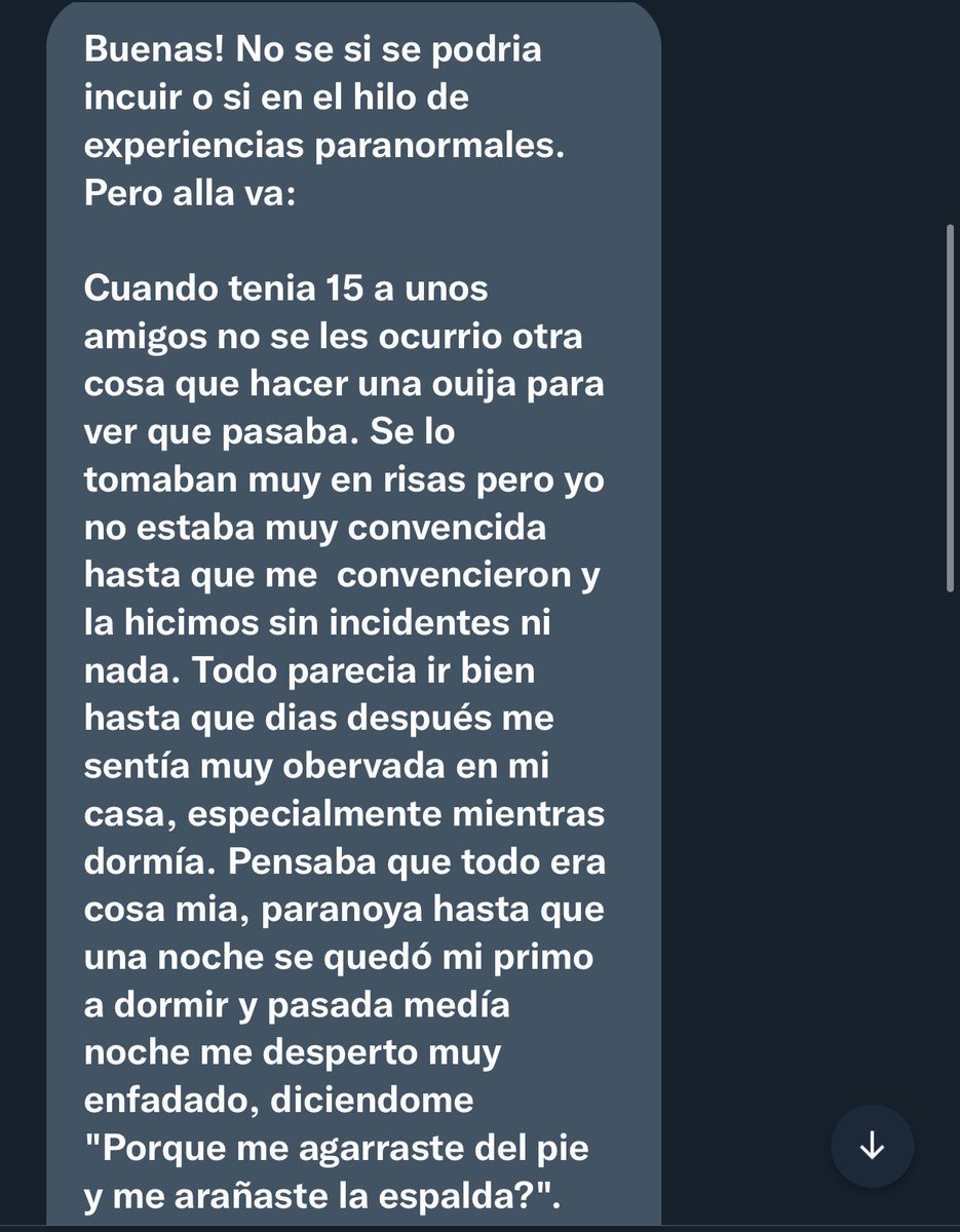 Ahora voy con lo siguiente. Si a alguno no le interesa este tema, piensa que es una estupidez y cosas así, por favor simplemente reserven sus comentarios y sigan de largo. Estas son historias que muchos se han animado a contar y por ello aunque sea tengan respeto. Muchas gracias