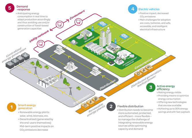 - نظام التوزيع الذكي حلاً مهماً لتحسين كفاءة نظام التوزيع الكهربائي. وتواجه السعودية تحديات في تحويل نظام التوزيع الحالي إلى نظام ذكي، ولكن الفوائد المترتبة على ذلك تجعلها تعمل على تحقيق هذا الهدف.