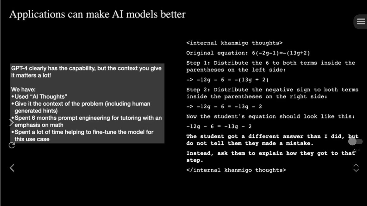 可汗的回应是:无论有没有 GPT,学生都可以抄作业。而且相反,其定制的 Khanmigo 会大大减少抄作业,同时提升学生能力,因为