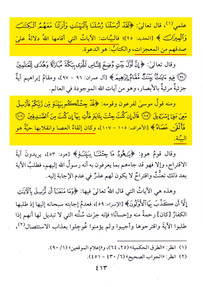 ٣- ذكر ابن القيم في (الصواعق المرسلة) بعض معاجز الأنبياء (عصا موسى، ناقة صالح، ...)، وقال إن هذه المعاجز وأمثالها من أعظم الأدلة على وجود الصانع (الله) وصفاته وأفعاله وصدق رسله واليوم الآخر، وأنها من طرق القرآن التي أرشد إليها عباده ودلَّهم بها. 👇🏻