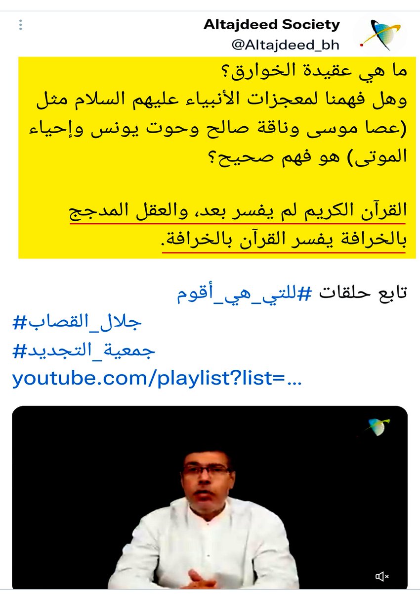 وغيرها، كلها (حسب عقيدة جمعية التجديد) خرافات وقصص من عصور الظلام! 👇🏻