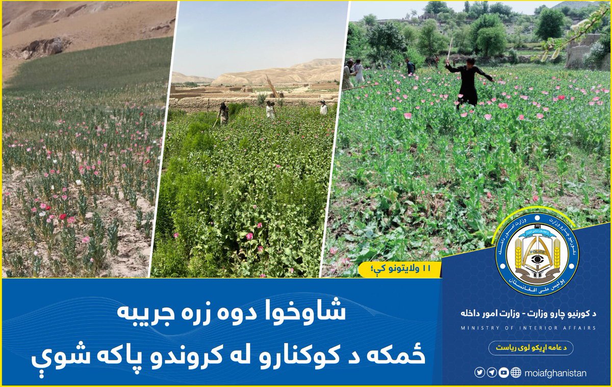 د نورستان ولایت په وانت وایګل ولسوالۍ، ۳۷ جریبه د فاریاب ولایت په قیصار ولسوالۍ، ۲۴ جریبه د بغلان ولایت په برکه او نهرین ولسوالیو او ۱۳ جریبه په مرکزي بغلان او پلخمري ښار، همدارنګه، ۴۰ جریبه په غور ولایت کې له کوکنارو پاکه شوې ده.