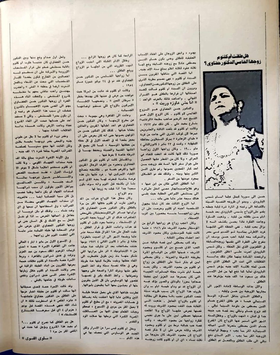(المقصود الدكتور محمد حسن الحفناوي ، أستاذ الأمراض الجلدية ، الشهير في ذلك الوقت ) وقد نشر الموضوع ، وفق تقصينا ؛ لإجبار "أم كلثوم " على التخلي عن مشروعها الخيري " دار أم كلثوم للخير "، وقد نفذت "جيهان السادات" (جيهان صفوت رؤوف ) هذا المشروع