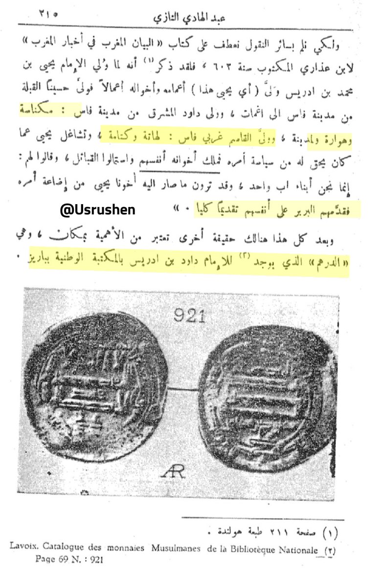 ▪︎#الدرس_الثامن : يذكر عبد الهادي في أحد دروسه و هو مؤرخ المملكة المغربية(عروبي من اصحاب القومية العربية) ، ذكر شخصية #داود_بن_دريس الاوربي و سبق أثبتنا ان الادارسة من نسل اوربة قبيلة امازيغية كانت تحكم واليلي و انتقلت الى فاس مع زناتة ، و هذا الدليل الاركيولوجي عليه اسم داود !