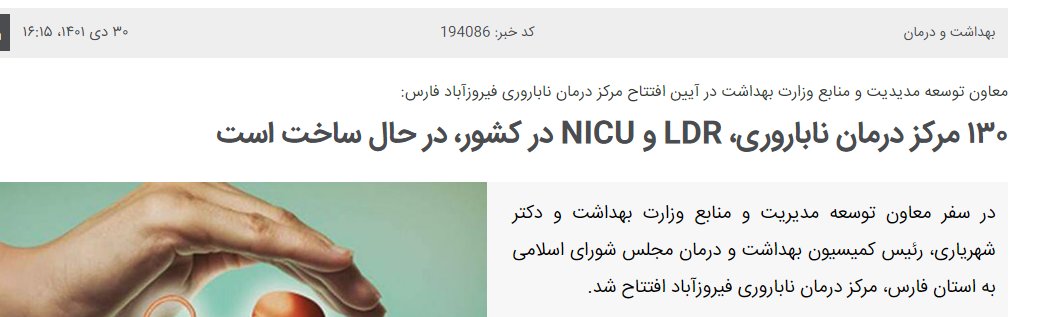 ۱۳۰ مرکز درمان ناباروری، LDR و NICU در کشور، در حال ساخت است