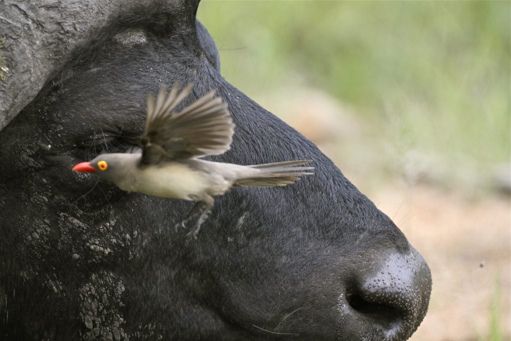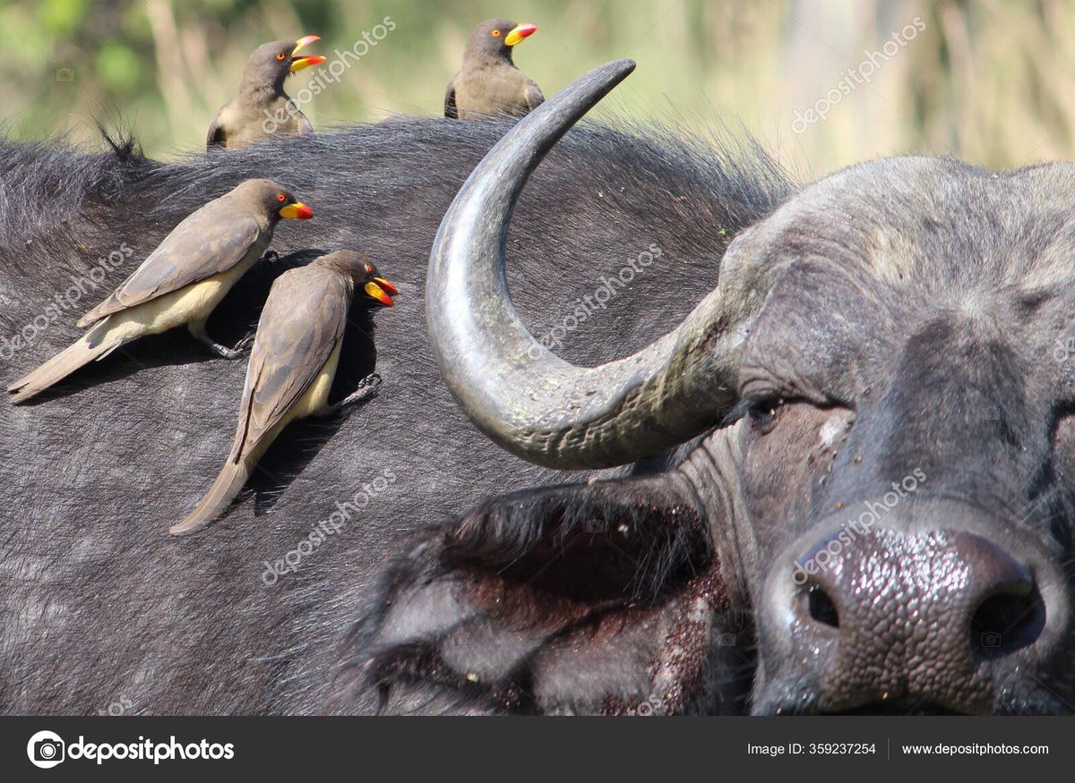 كذلك فإن طائر "oxpecker" يعمل على حماية الجاموس الإفريقي عن طريق تناول الحشرات من الجروح مما يمنع انتقال بعض الأمراض المعدية التي يمكن أن تقضي علي الجاموس