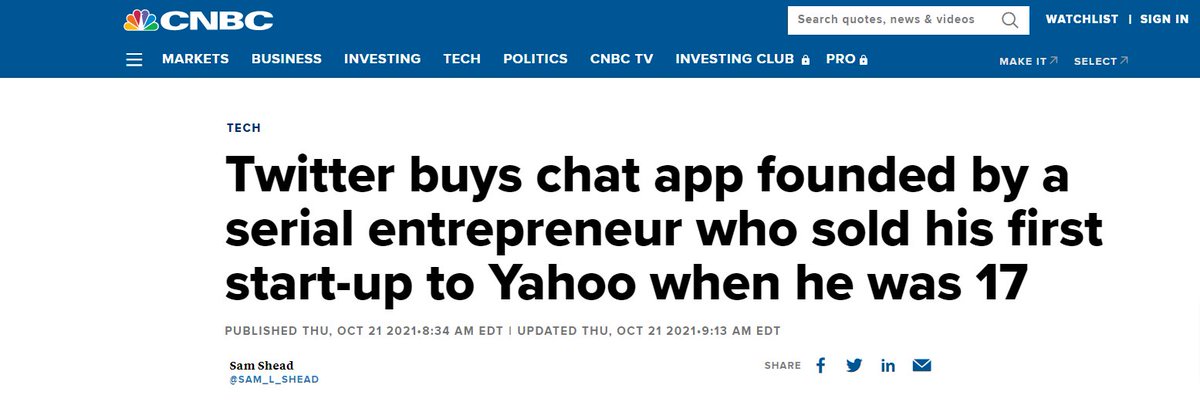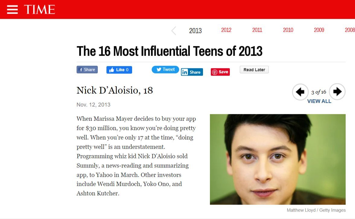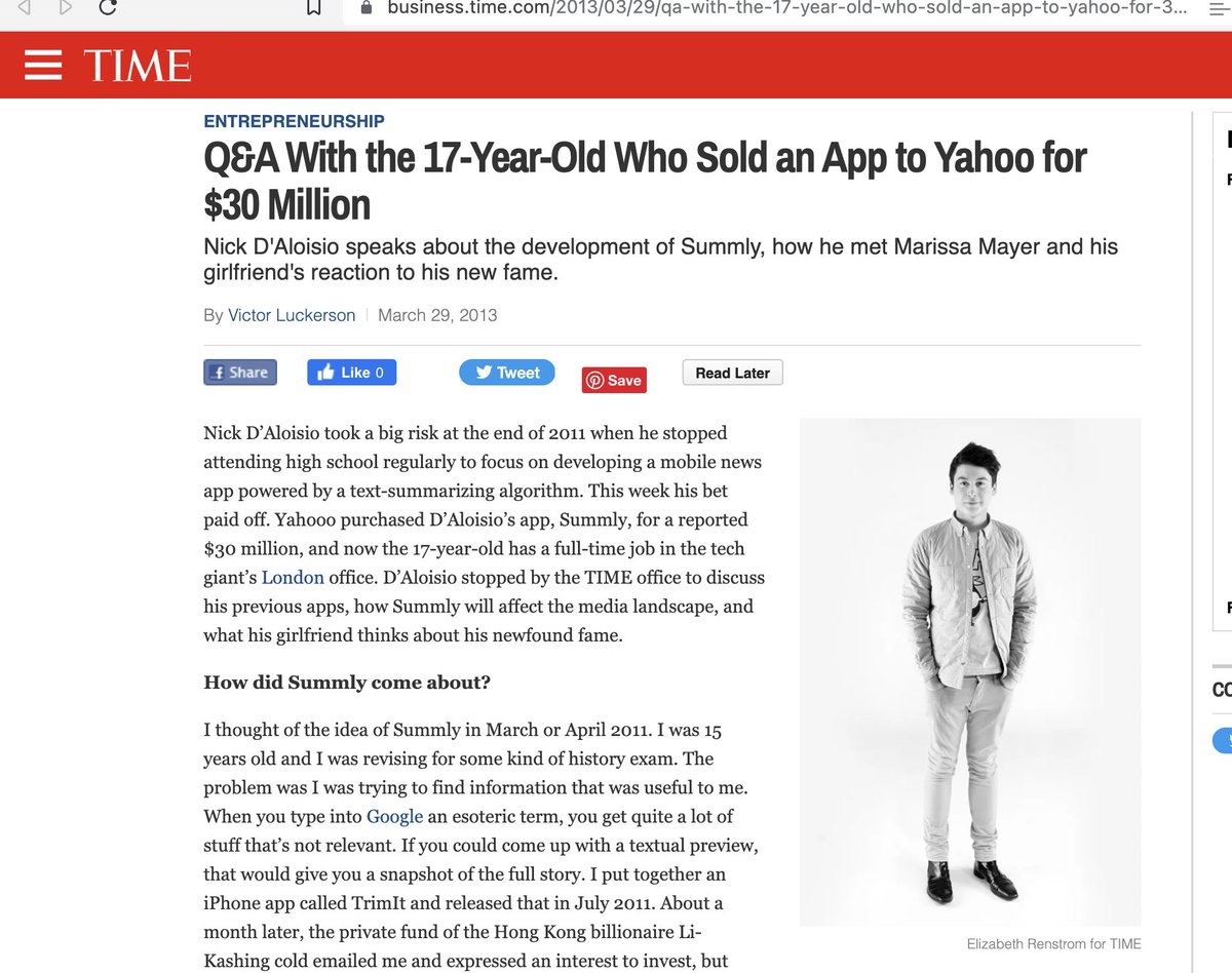 باع شركته الأولى لياهو ب 30 مليون دولار وهو في عمر 17 عام بينما باع شركته الثانية لتويتر