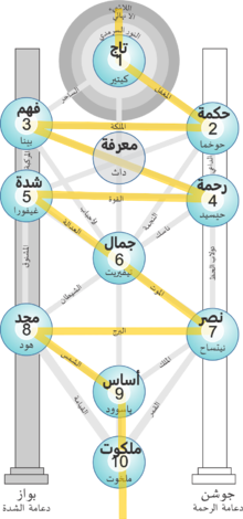 وأربعة في الوسط تشكل محور ولكل نقطة تفسير خاص حسب الغاية من استخدامها فيمكن أن تعني اسم احد الأنبياء او لون او عالم او كوكب او تاريخ او شخص أو دولة أو مملكة أو حدث ما ولكنها بشكلها العام البسيط حسب الشكل حيث تقع مملكة الإله بالنقطة العاشرة الدنيا عكس المتوقع باعتبارها نقطة الحياة