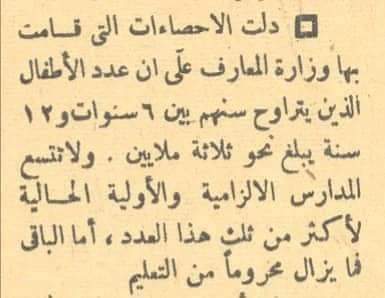 اعتمدت الباحثة فى دراستها على إحصائيات التعليم بوزارة المعارف "التربية والتعليم الآن"..